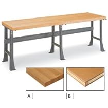 Where I buy 8' Wide Workbenches with 21/4" Thick Top 8' Wide Workbenches with 21/4" Thick Top features an extra-wide worksurface that is available in one of two different tops to fit your job. Butcher block maple is virtually indestructible, warp-resistant and features thermobonded Varnique finish that resists wear and repels liquids. Shop-Mate top has an edge-glued lumber core surrounded by smooth high-density phenolic resincore top and bottom—vinyl sealer resists conventional liquids. Both tops have a square edge. 16-gauge steel legs. 14-gauge steel stringer. Ships unassembled. Appropriate for lean manufacturing. NOTE: Shown with fixed-height legs and maple top. NOTE: Adjustable-height legs are straight; fixed-height legs are ... » Continue Reading about 8' Wide Workbenches with 21/4" Thick Top.